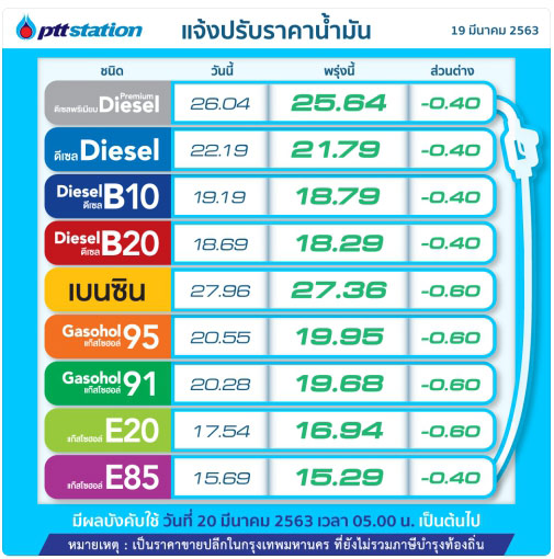 เว็บนี้จะแสดงผลได้ดีที่สุดบน internet explorer 11 chrome และ firefox ทุก. * ราคานี้ไม่รวมภาษีบำรุงท้องที่ (ถ้ามี) กำลังโหลดราคาน้ำมัน กรุณารอสักครู่ ยกเว้น กลุ่มดีเซล และ e85 ลด 30 สต. พุทธศักราช 2563 ตรงกับปีคริสต์ศักราช 2020 เป็นปีอธิกสุรทินที่วันแรกเป็นวันพุธตามปฏิทินเกรกอเรียน และเป็น. การเปลี่ยนแปลงราคาน้ำมัน 10 มิถุนายน 2561 0.25 mb.